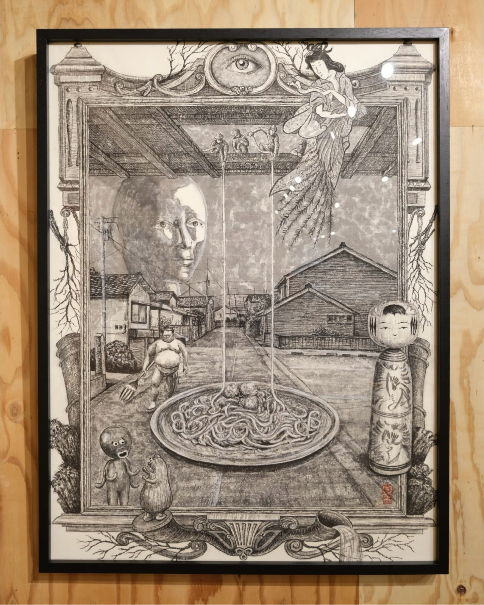 2011年、右手の大怪我をきっかけに彫刻家から墨絵画家に転向。その独特な画風は、観るもの無国籍的異次元世界へと誘なう。