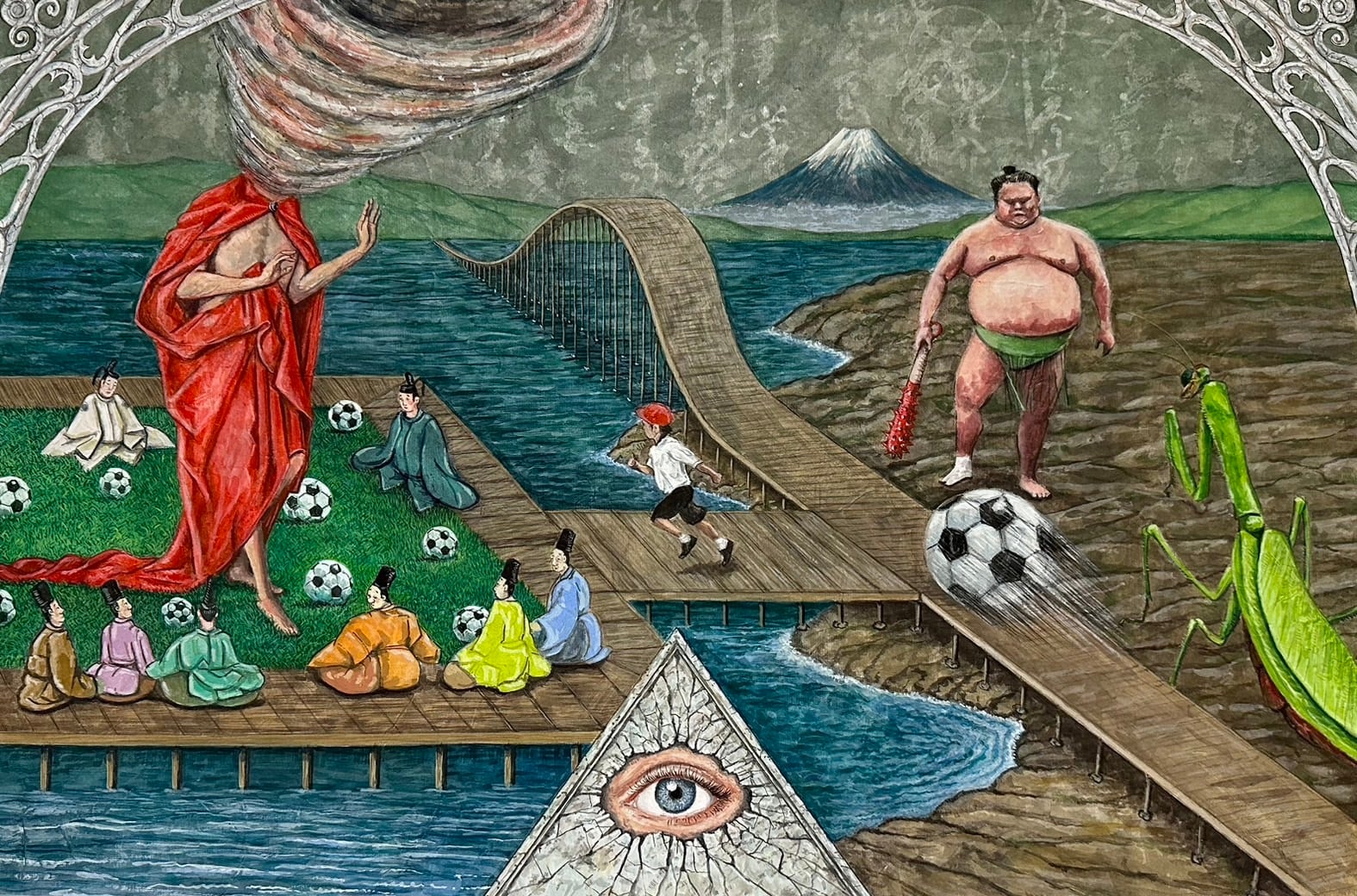 2011年、右手の大怪我をきっかけに彫刻家から墨絵画家に転向。その独特な画風は、観るもの無国籍的異次元世界へと誘なう。