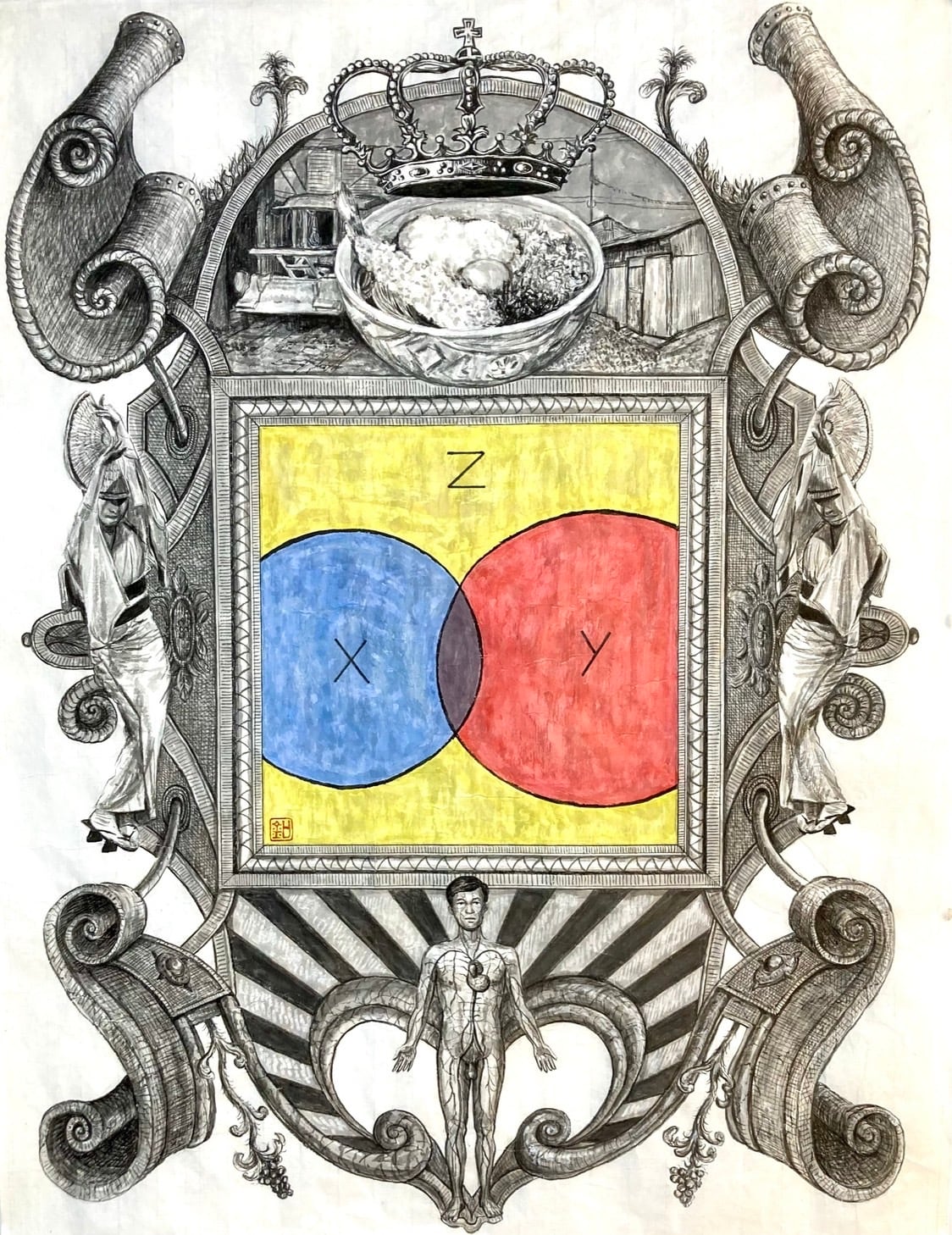 2011年、右手の大怪我をきっかけに彫刻家から墨絵画家に転向。その独特な画風は、観るもの無国籍的異次元世界へと誘なう。