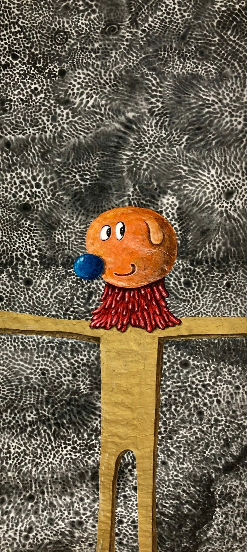 2011年、右手の大怪我をきっかけに彫刻家から墨絵画家に転向。その独特な画風は、観るもの無国籍的異次元世界へと誘なう。