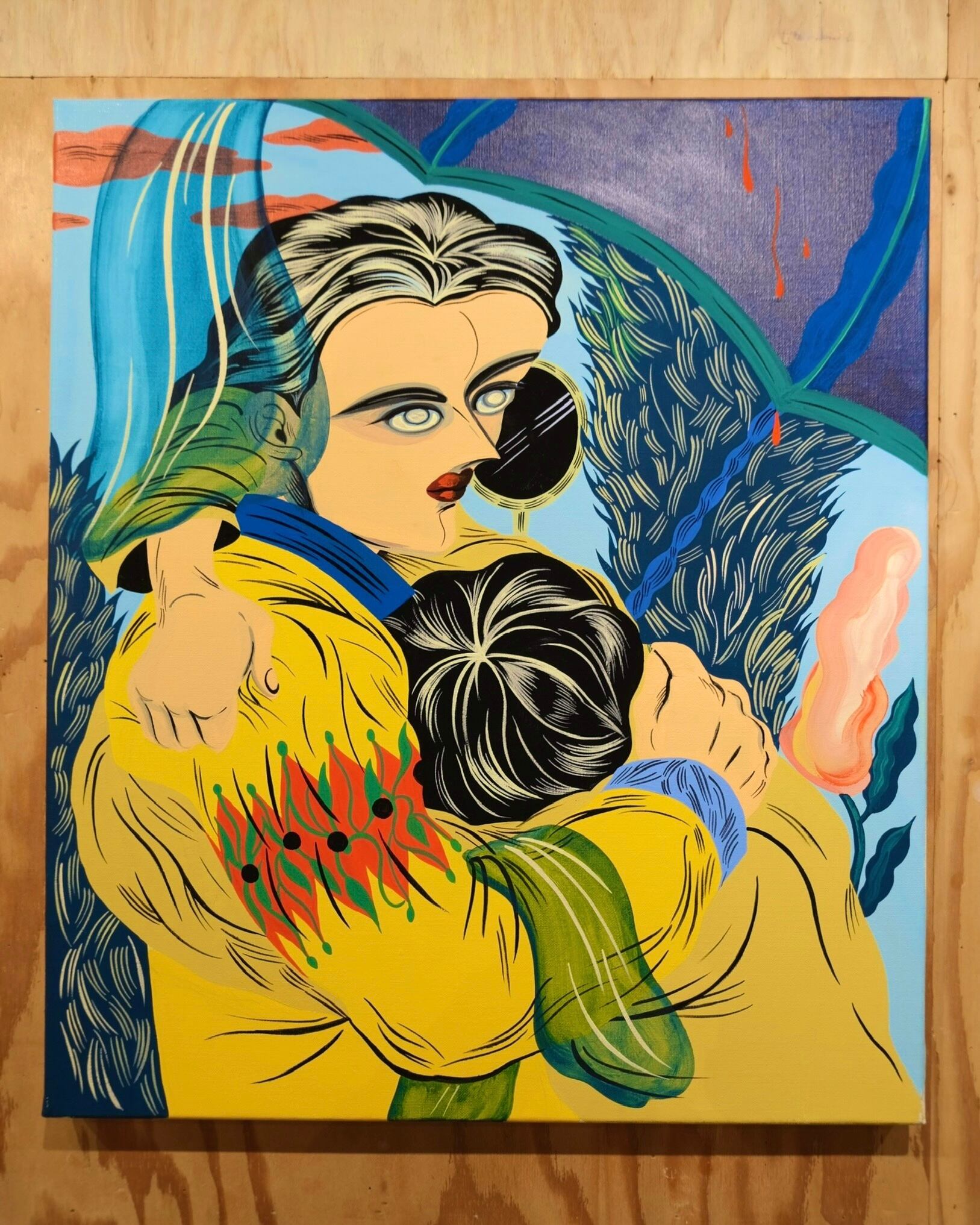 アクリルによる鮮やかな色彩とシュールなタッチの人物画を得意とする。
