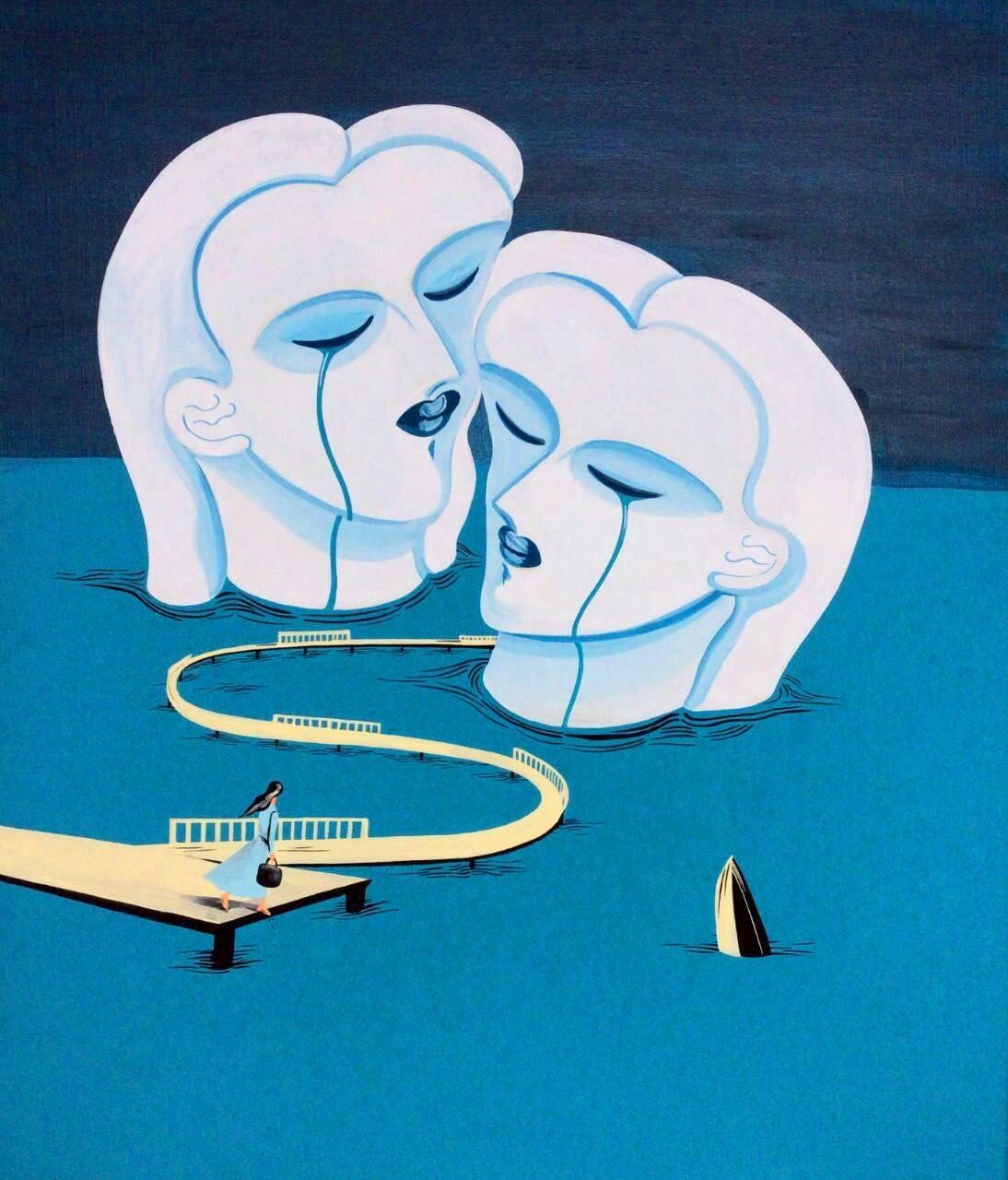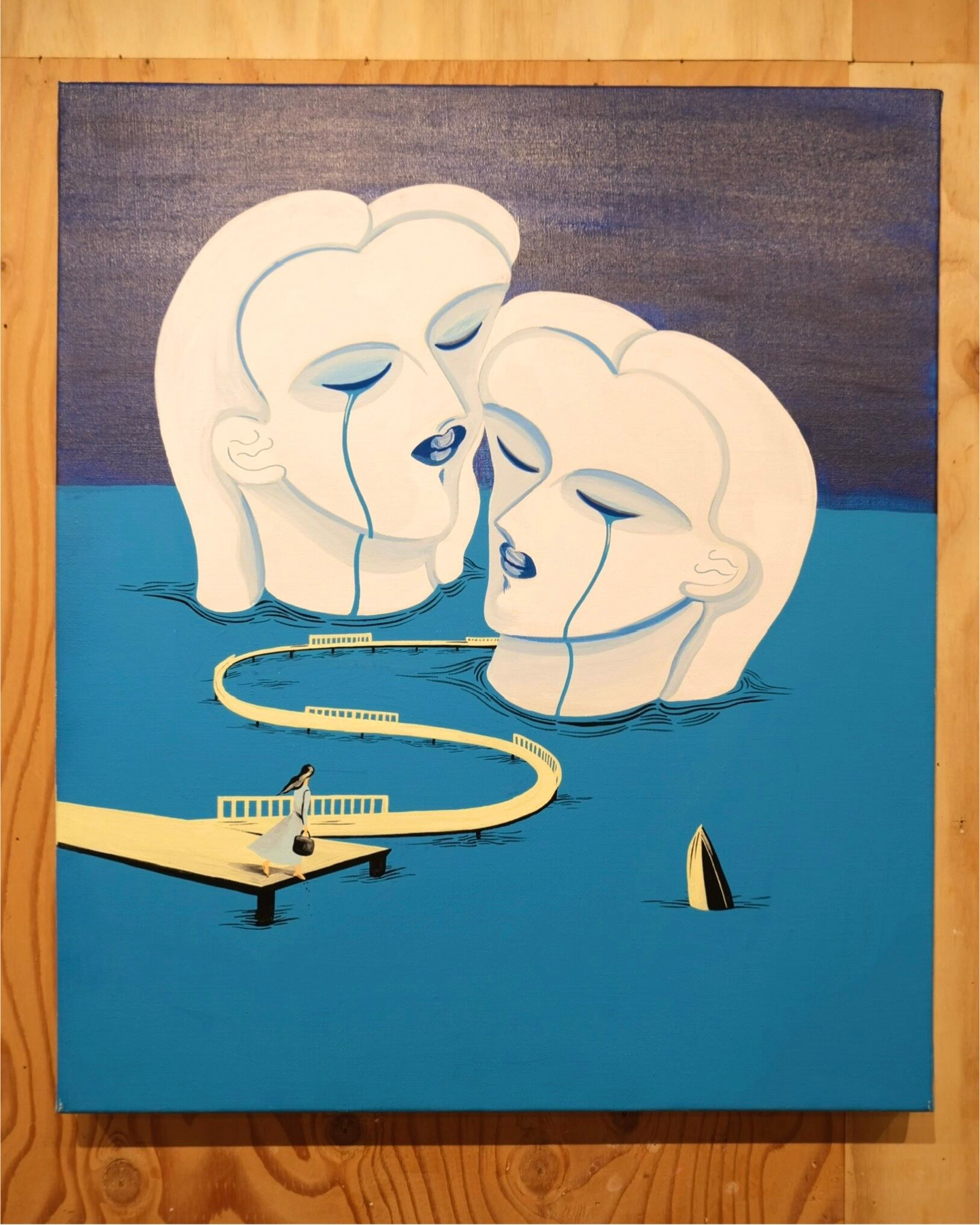 アクリルによる鮮やかな色彩とシュールなタッチの人物画を得意とする。