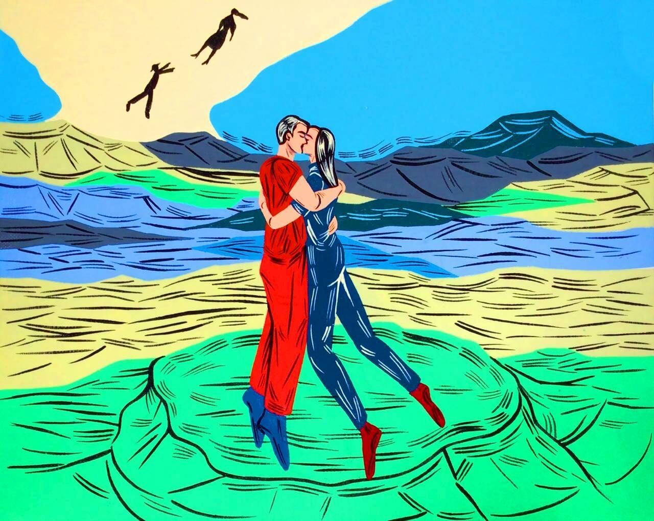 アクリルによる鮮やかな色彩とシュールなタッチの人物画を得意とする。