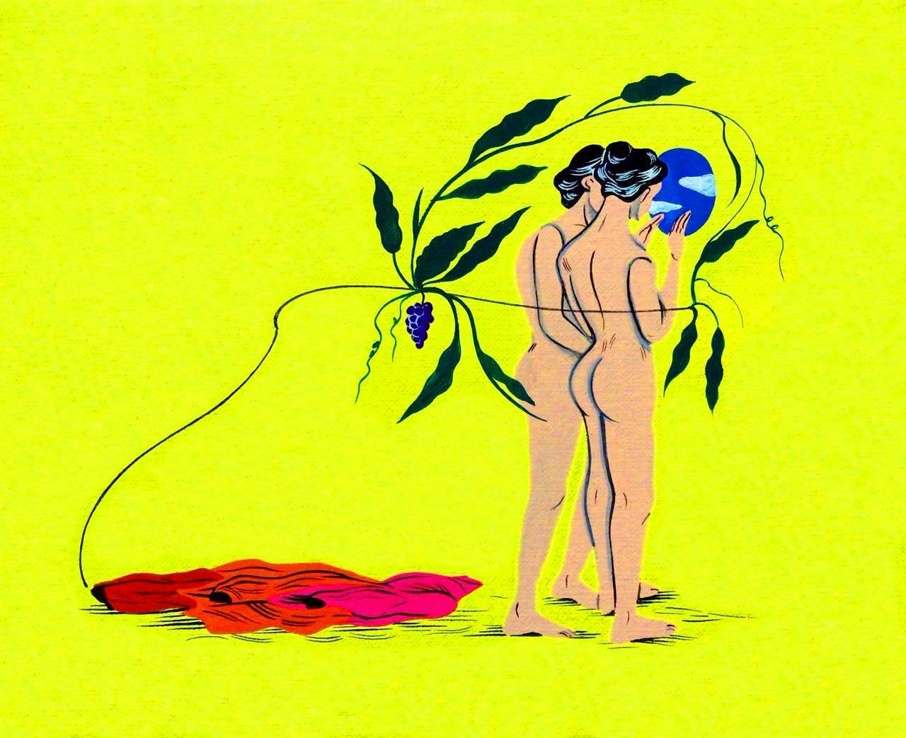 アクリルによる鮮やかな色彩とシュールなタッチの人物画を得意とする。