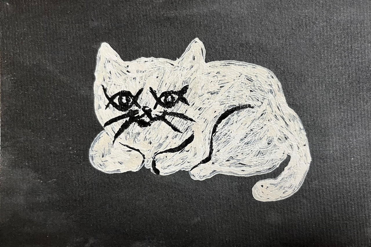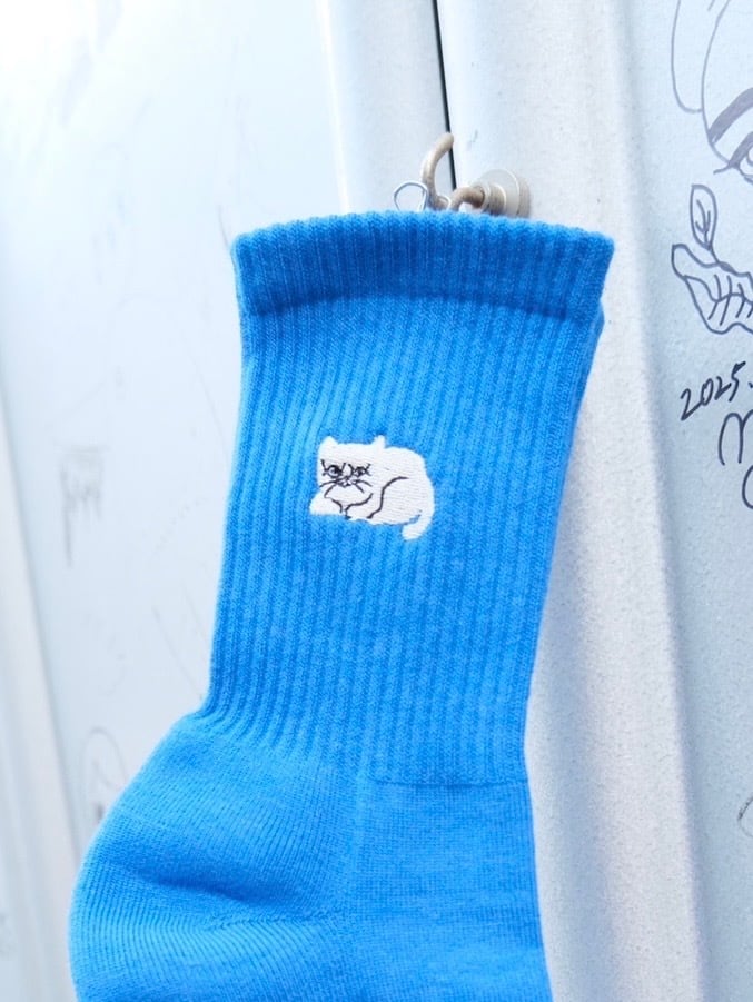 大橋さんの作品「おやすみ」(オフレコに原画飾っています)の人気の猫スウェットに加えて、ショート丈の猫くつ下をつくりました。