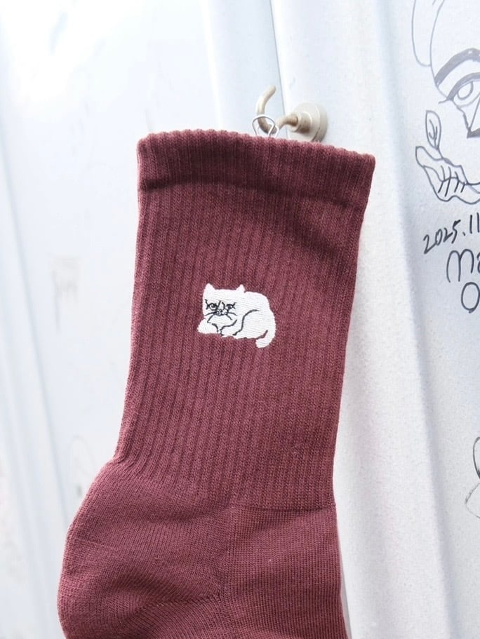 大橋さんの作品「おやすみ」(オフレコに原画飾っています)の人気の猫スウェットに加えて、ショート丈の猫くつ下をつくりました。