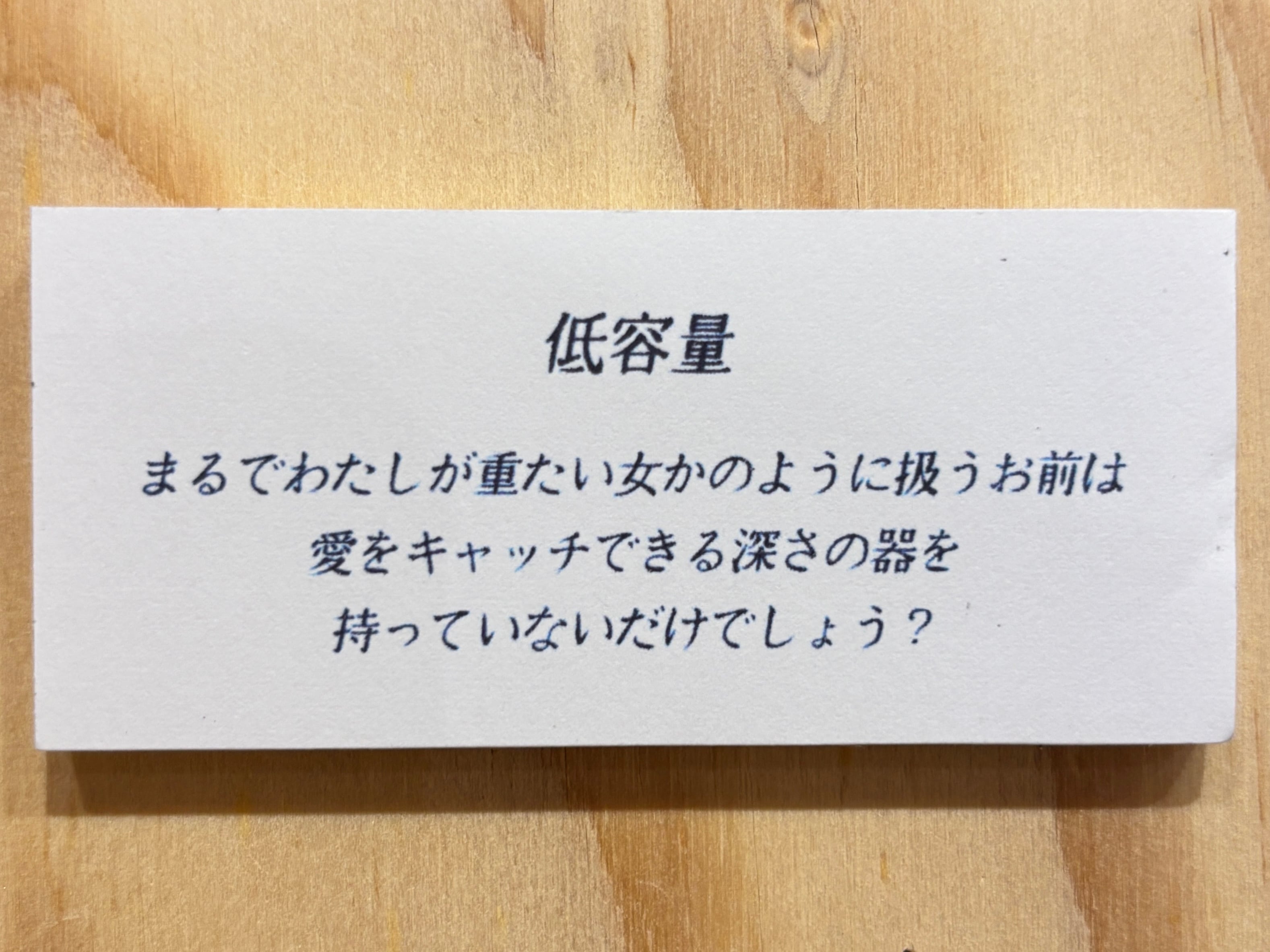 キャプション : まるでわたしが重たい女かのように扱うお前は 愛をキャッチできる深さの器を 持っていないだけでしょう?